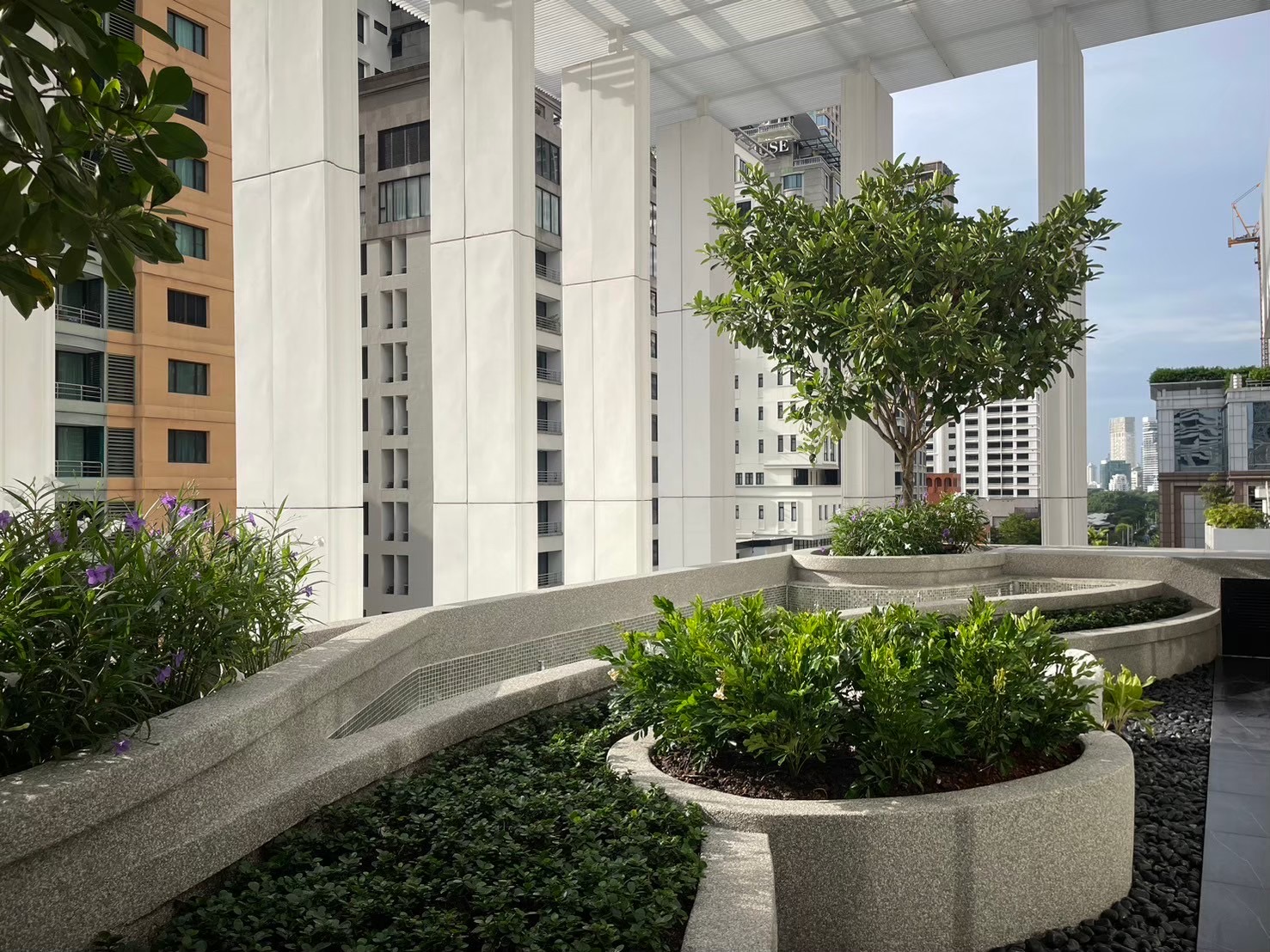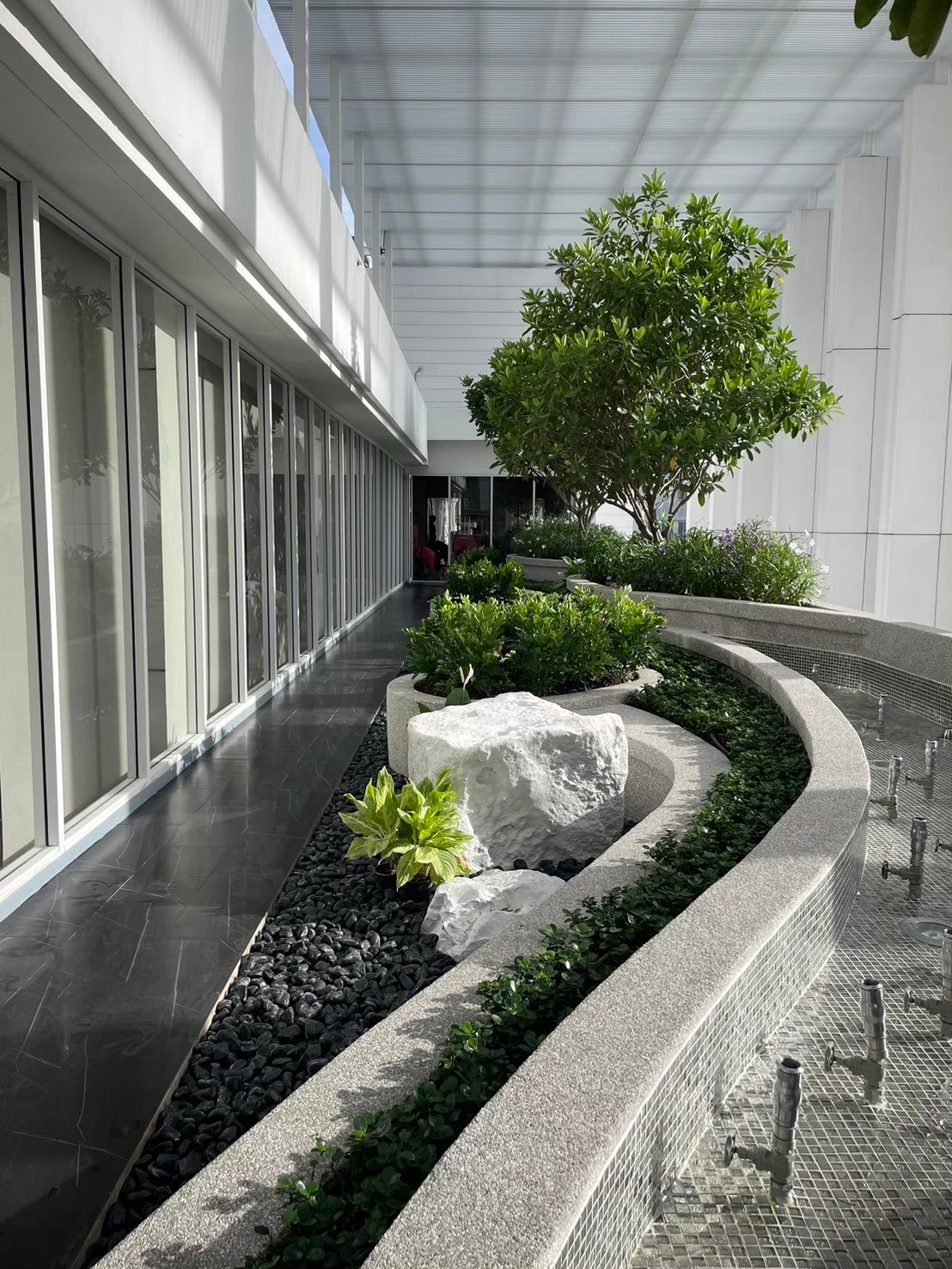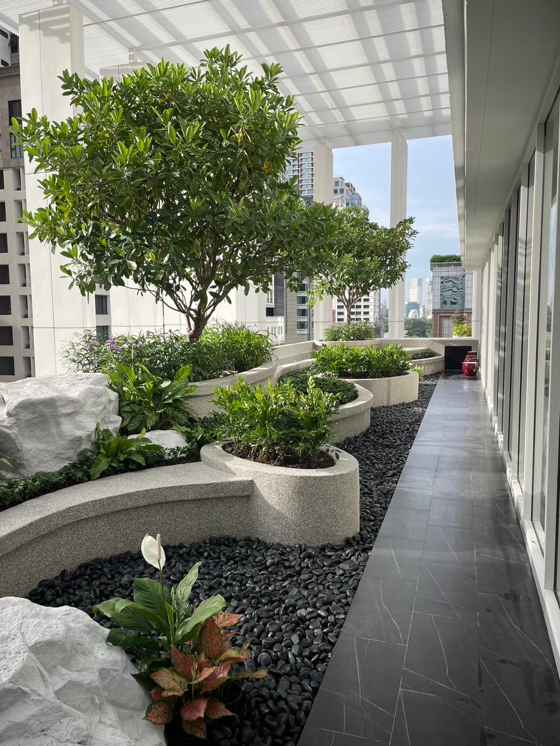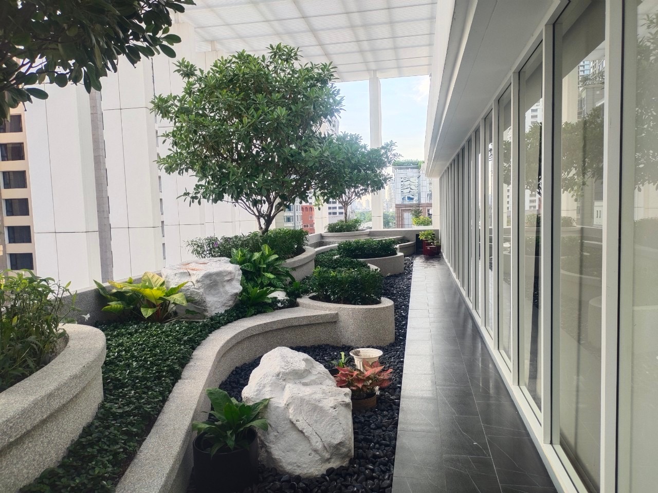 Vivre Langsuan เป็นโครงการที่ตั้งอยู่ใจกลางเมือง แต่ต้องการพื้นที่สีเขียวที่ช่วยลดความวุ่นวายและเพิ่มความผ่อนคลายให้ผู้อยู่อาศัย เราออกแบบสวนให้มีบรรยากาศหรูหรา สงบ และเป็นพื้นที่หลบพักจากชีวิตในเมือง ด้วยการเลือกใช้ต้นไม้ให้ร่มเงา พรรณไม้ใบสวย และดีไซน์เส้นทางเดินที่ดูละมุนตา พร้อมทั้งออกแบบมุมพักผ่อนเล็กๆ ในแต่ละจุดเพื่อให้ผู้อยู่อาศัยได้สัมผัสธรรมชาติอย่างใกล้ชิด